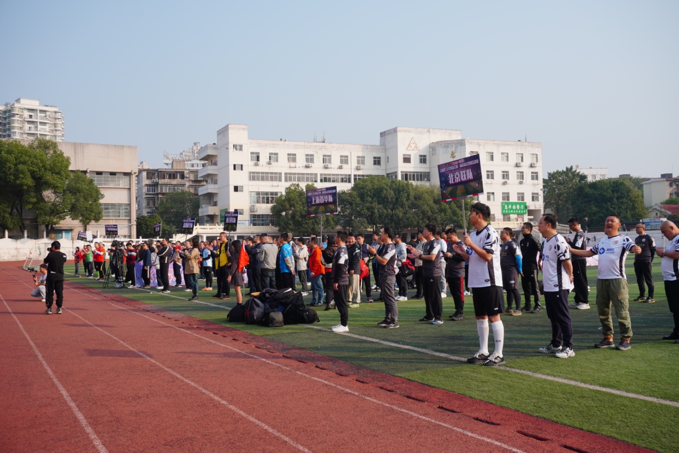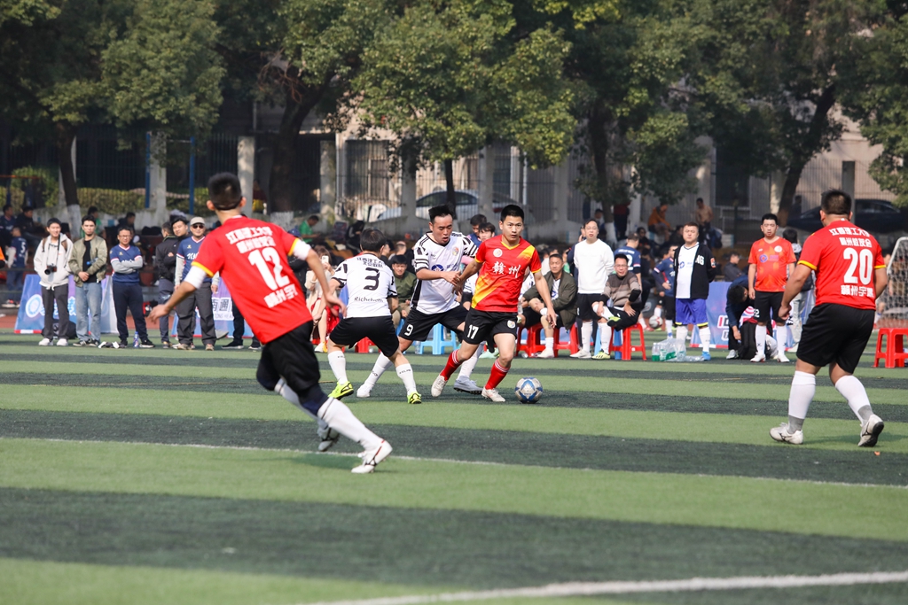 运动场上,各参赛队员配合默契,停、传、射等基本功扎实,拦截抢断积极,攻防转换快速;裁判员公正裁决,对场上各种情况反应及时,判罚精准。赛场外,组委会统筹有序、保障有力,由校友自发组成的解说团队与摄像团队紧密合作,向各地校友进行赛事直播;医疗团队第一时间为受伤队员进行医治;场下的观众不时为一脚高质量的射门或一次完美的扑救爆发出激情呐喊和热烈掌声。