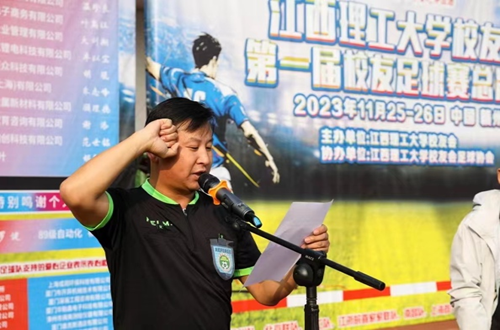 龚姚腾代表学校宣布安博站官网登录入口,_安博(中国)校友会第一届校友足球赛总决赛开赛。