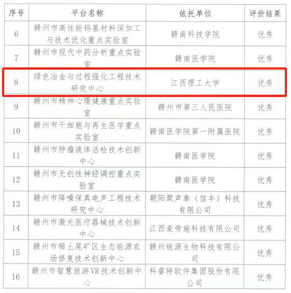 自赣州市开展科研创新平台运行绩效评价以来,在评价优秀的科研创新平台中,我校均榜上有名。这充分彰显了我校科研平台建设和服务区域及地方经济社会发展的能力。