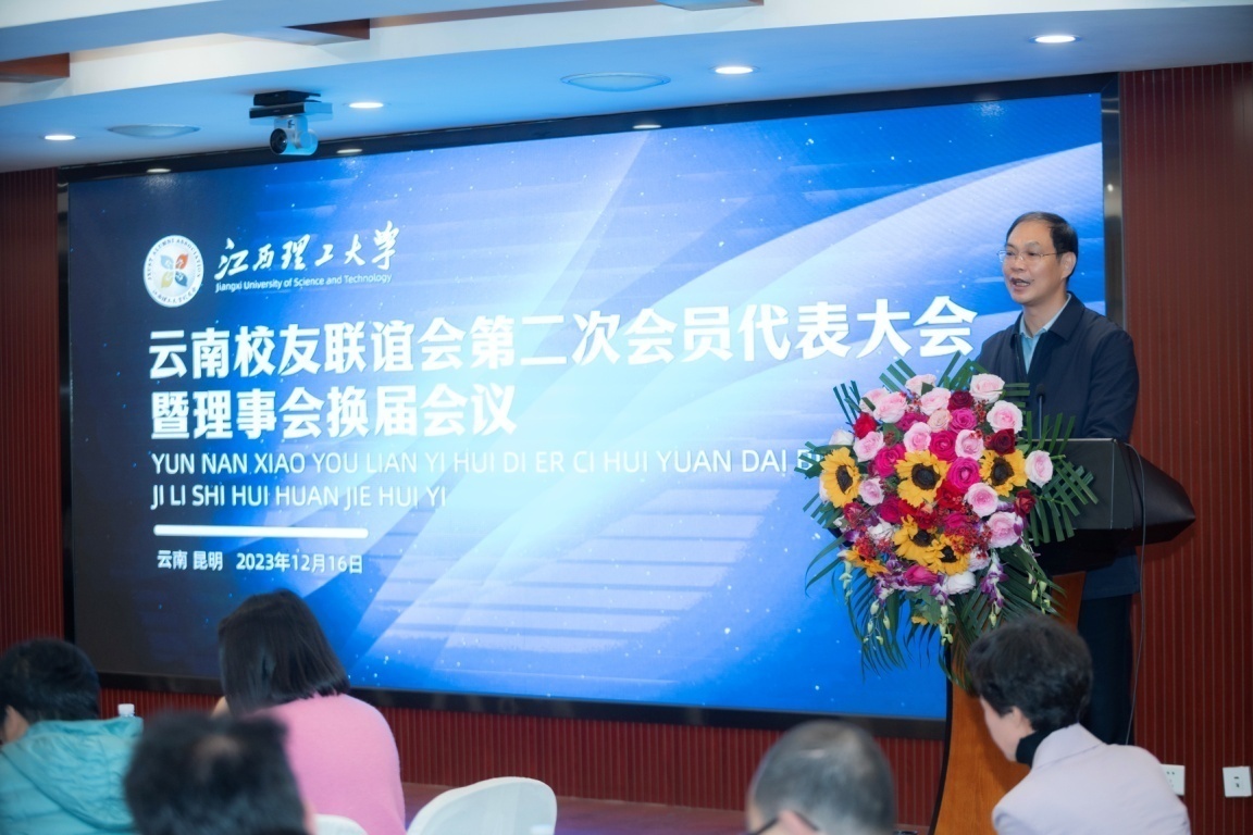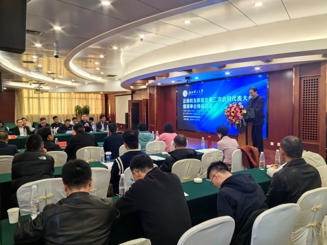 本网讯 12月16日,我校云南校友联谊会第二次会员代表大会暨理事会换届会议在云南昆明召开,在滇校友代表齐聚一堂,共商校友会建设,聚合发展动能,共筑发展共同体。校党委常委、副校长、校友会副会长廖春发出席会议,国内合作促进中心、校友会秘书处负责人参会。