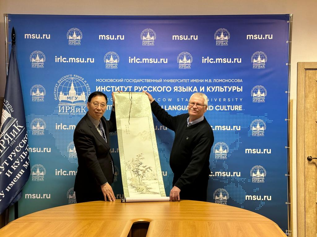 在俄罗斯莫斯科,我校代表团赴莫斯科国立大学与副校长尤里•马泽毅座谈,签署合作协议,就师生互派互访、学历提升等项目进行了探讨。代表团看望了在莫斯科国立大学留学的我校学生。