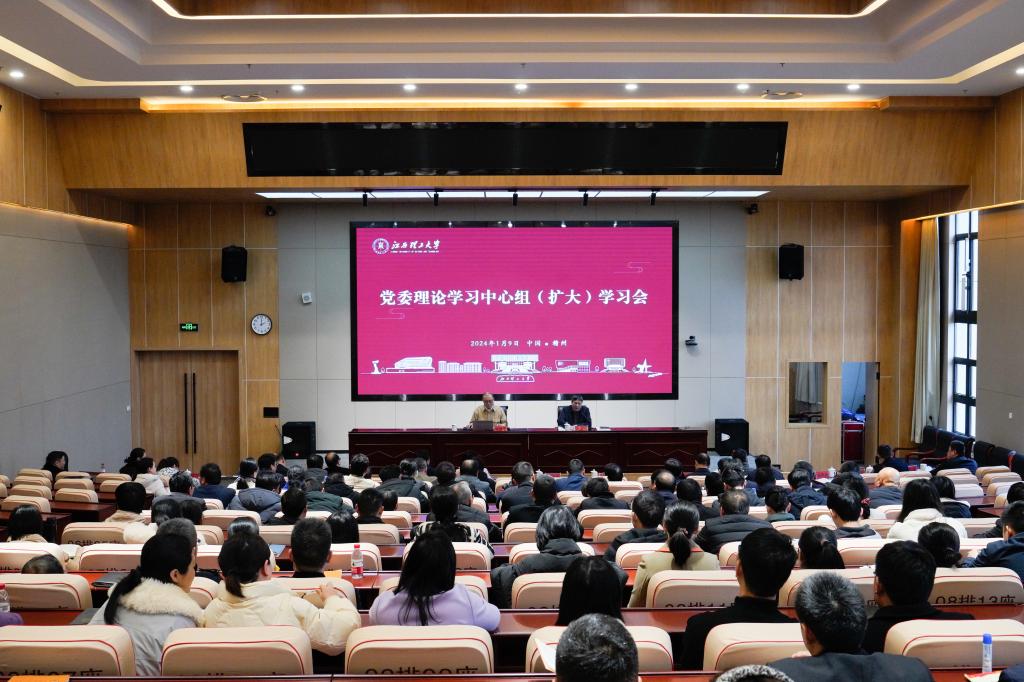 本网讯 1月9日下午,我校在三江校区启航会议中心1号会议厅召开党委理论学习中心组(扩大)学习会。江西省公安厅国保总队政委胡频庚受邀作题为《维护高校政治安全》的专题辅导报告。全体在家校领导、校党委常委、学校党委理论学习中心组全体成员、各二级党组织书记以及机关党委党员共计100余人参加会议。会议由校党委副书记罗仙平主持。