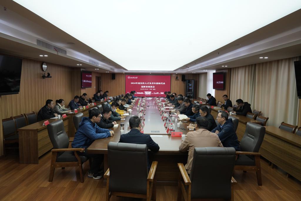本网讯 1月12日下午,我校2024年高层次人才及青年教师代表新春座谈会在三江校区濂溪楼2号会议室召开。校党委书记杨斌,校党委常委、副校长龚姚腾出席座谈会,学校相关职能部门负责人与高层次人才、青年教师代表参加会议。南昌校区同步视频参会。会议由校党委常委、党委组织部部长刘志刚主持。