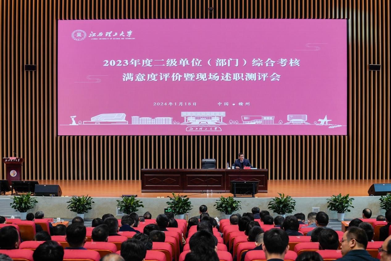 本网讯 1月18日,我校2023年度二级单位(部门)综合考核现场述职测评会在三江校区志远会议中心一楼1号会议厅召开。测评会分为二级党组织书记抓基层党建述职测评会和满意度评价暨现场述职测评会。