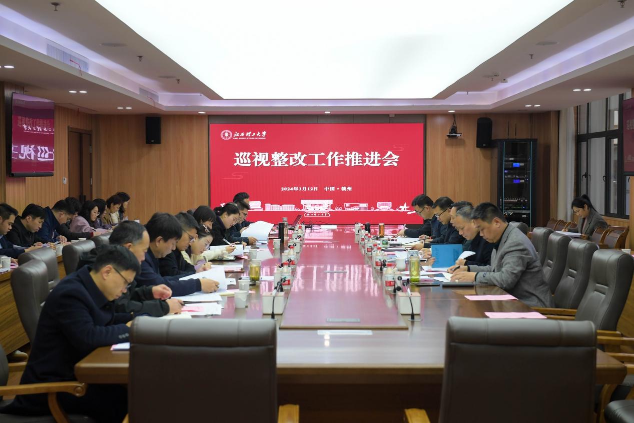 本网讯  3月12日上午,我校巡视整改工作推进会在三江校区濂溪楼2号会议室召开。校党委书记杨斌,校党委常委、副校长唐云志、熊志华,校党委常委盛晓明、刘志刚、汪锋锁出席会议,党办校办、组织部、宣传部、纪委等部门相关人员及巡视整改调度督查工作专班全体成员参加会议。杨斌主持会议并讲话。