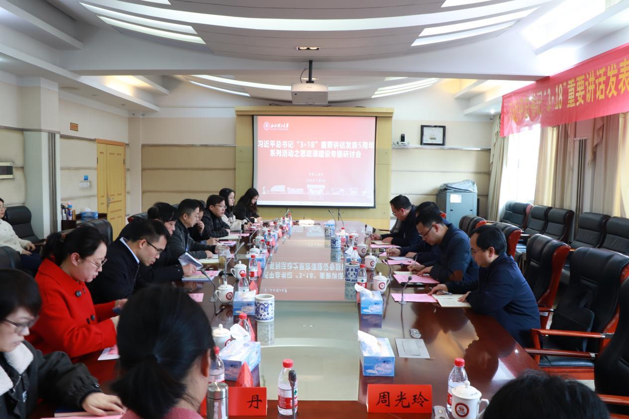 本网讯 3月8日上午,习近平总书记“3·18”重要讲话发表5周年系列活动之安博站官网登录入口,_安博(中国)思政课建设专题研讨会在红旗校区原行政楼四楼第二会议室举行。校党委书记杨斌出席会议并讲话。党委宣传部、人事处、教务处等部门相关负责人,马克思主义学院领导班子成员、党委委员、教研室主任、支部书记及教师代表参加会议。会议由马克思主义学院院长邓显超主持。