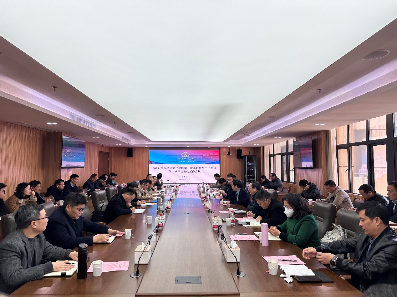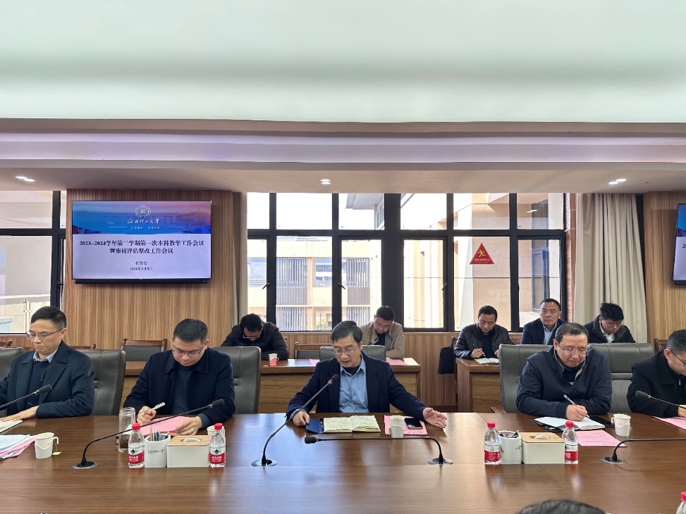 本网讯 3月8日上午,我校在三江校区濂溪楼2号会议室召开了2023-2024学年第二学期第一次本科教学工作会议暨审核评估整改工作会议。校党委常委、副校长黄志繁出席会议,相关职能部门负责人、各学院分管教学工作副院长及教务处全体人员参加会议。会议由校教务处处长潘春荣主持。