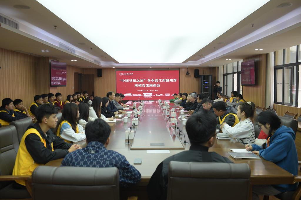 本网讯 文脉永流传,千里寻乡根。3月16日,“中国寻根之旅”冬令营江西赣州营的营员们来到我校参观学习,并召开座谈会。市侨联党组书记、主席王孝友,我校党委常委、副校长廖春发出席并讲话。我校党委常委、统战部部长汪锋锁主持座谈会,我校国际教育学院副院长肖静,市侨联四级调研员、秘书长王健,泰国泰北清迈区华人村华文教师联谊会秘书长、清迈教联高级中学校长王明明,以及全体营员、领队老师等共50余人参加座谈。
