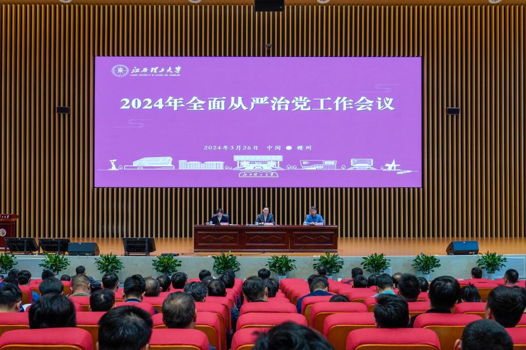 本网讯 3月26日下午,我校2024年全面从严治党工作会议在志远会议中心1号厅召开。会议传达学习了上级有关会议精神,回顾总结了学校2023年全面从严治党工作,安排部署了学校2024年全面从严治党工作。全体在家校领导,校党委常委,校纪委委员,全体中层干部,各二级党组织纪检委员、党建组织员、教工党支部书记,机关科级及以上干部参加会议。