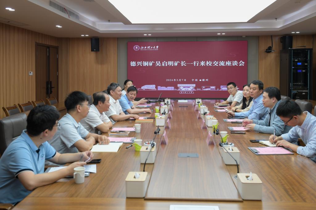 本网讯  5月7日下午,德兴铜矿矿长吴启明一行来访。校党委副书记罗仙平在三江校区濂溪楼1号会议室会见来宾并召开座谈会。学校科学技术处及各相关学院负责人参加会议,会议由校科学技术处处长吴彩斌主持。