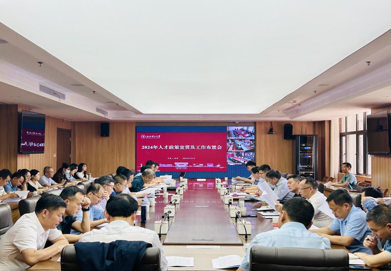 本网讯  5月8日下午,我校2024年人才政策宣贯及工作布置会在三江校区濂溪楼2号会议室召开。校党委副书记罗仙平,校党委常委、党委组织部部长刘志刚出席会议,各学院人才工作负责人参加会议。