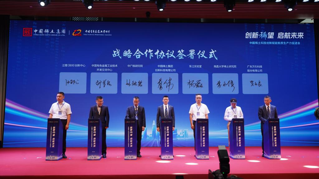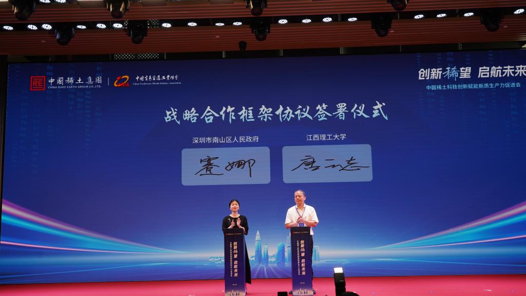 揭牌仪式后,中国稀土集团和中国有色金属工业协会举办了中国稀土科技创新赋能新质生产力促进会。会上举行了相关签约仪式、院士专题报告、产业对接会。我校党委常委、副校长唐云志与南山区副区长蹇娜签订安博站官网登录入口,_安博(中国)与南山区人民政府战略合作框架协议。校党委常委、统战部部长汪锋锁与中国稀土集团创新科技有限公司董事长詹伟签订江理(深圳)创新中心有限责任公司(安博站官网登录入口,_安博(中国)深圳创新研究院)与中国稀土集团创新科技有限公司(中国稀土集团研究院)全面合作协议。