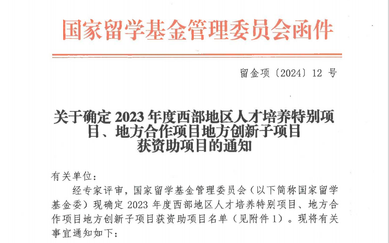 我校获批国家留学基金委“西部地区人才培养特别项目、地方合作项目地方创新子项目”