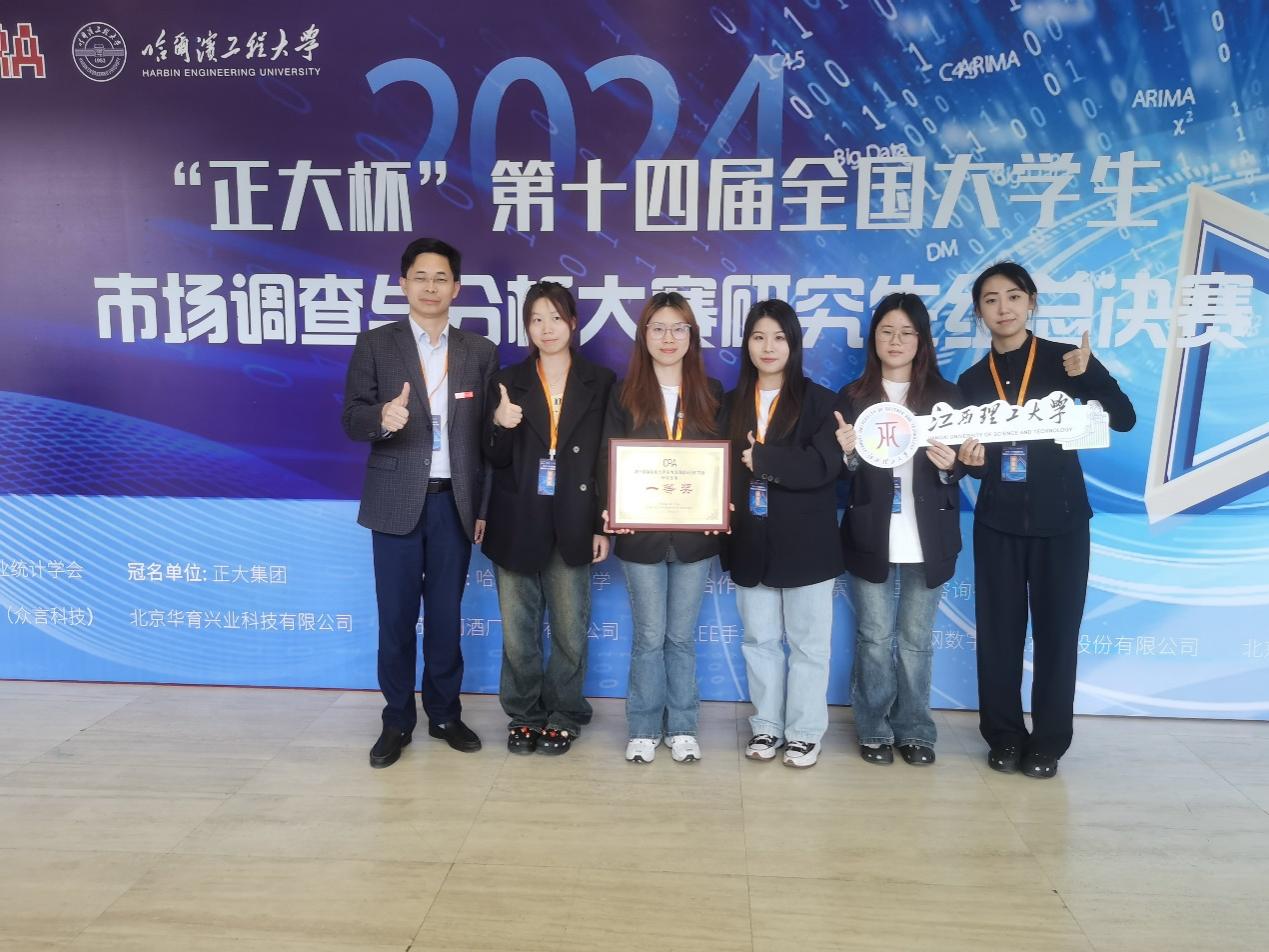 本网讯  5月19日,由教育部高等学校统计学类专业教学指导委员会、中国商业统计学会共同主办的“正大杯”第十四届全国大学生市场调查与分析大赛(研究生组)总决赛在哈尔滨工程大学圆满落幕,我校在本次赛事中实现国赛一等奖的历史性突破,全国一等奖及国奖总数均列江西省第一。