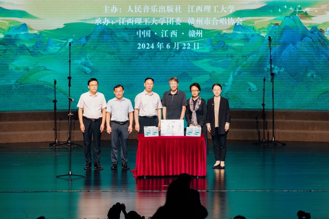 本网讯 “以诗传情,以乐抒怀,走出剧场,那些被唱诵的诗词,依然萦绕在我的耳边。”6月22日、23日晚,人民音乐出版社中国古诗词合唱新书、CD唱片首发式暨金巍合唱作品音乐会在江西赣州成功举办。首发式由人民音乐出版社、我校联袂主办。人民音乐出版社副总编辑李向颖,中国合唱协会理事长马俊英,中共赣州市委常委、宣传部部长钟小武,我校党委书记杨斌,党委副书记罗仙平等领导、嘉宾出席活动。