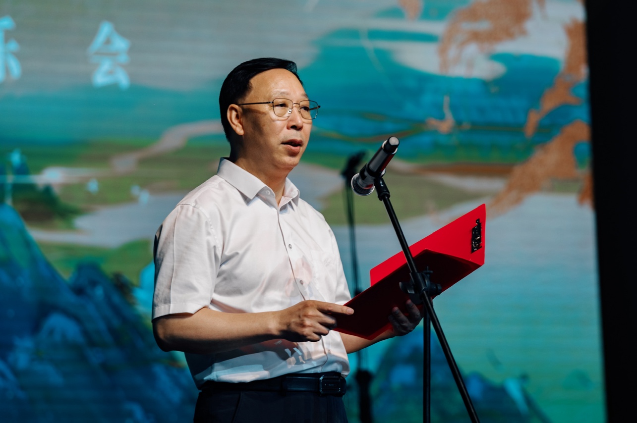 杨斌在致辞中表示,学校着力从中华优秀传统文化中汲取立德树人智慧,推动中华优秀传统文化创造性转化和创新性发展,深化美育与思政教育融合互动。用“把古诗词唱成歌”的方式浸润广大青年的心灵,让听众在诗与歌的双向奔赴中深切感受中华民族和衷共济的历史进程、情感交融的历史光辉,是学校着力赓续中华文脉、推动中华优秀传统文化创造性转化和创新性发展的重要举措和实践成果。