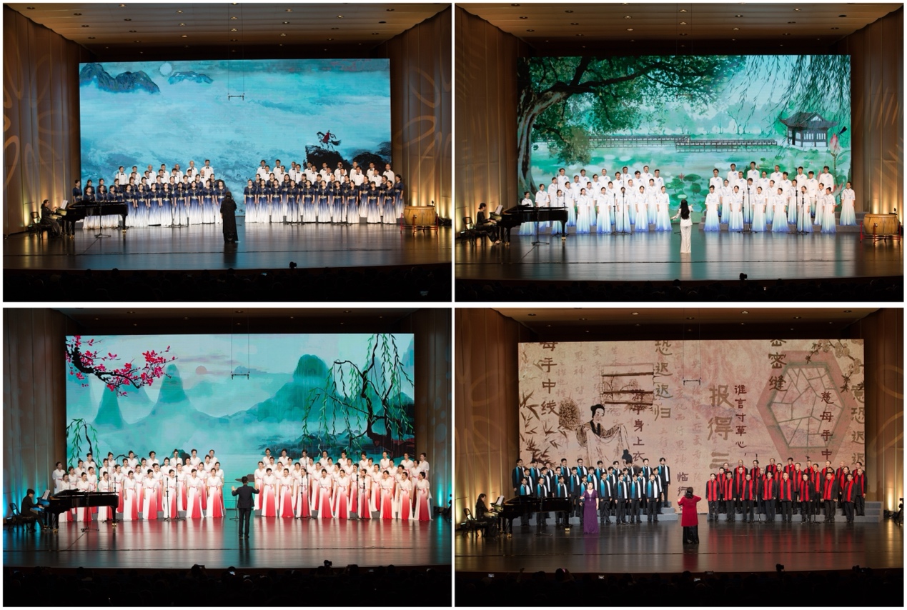 活动策划、我校八角之声合唱团首席指挥杨智昕老师介绍音乐会独特的舞台呈现时表示:“为了更好呈现中国古诗词的唯美、情愫、感怀,音乐会的舞美设计、服装造型、背景视频打破了不使用灯光和视频的‘惯例’,融入了满满的中国传统文化元素。”