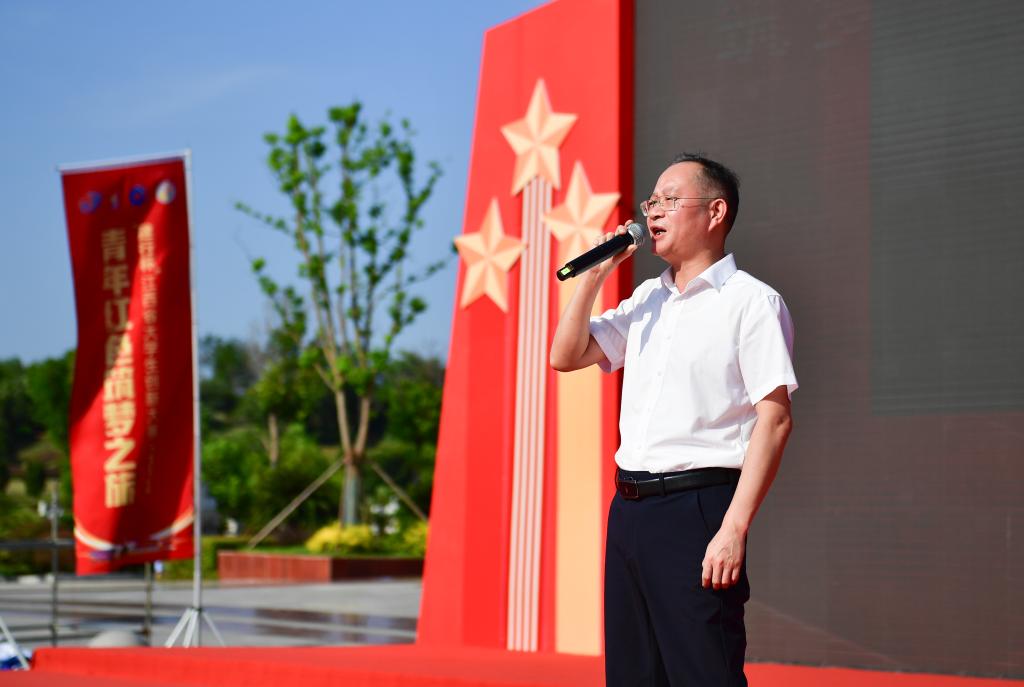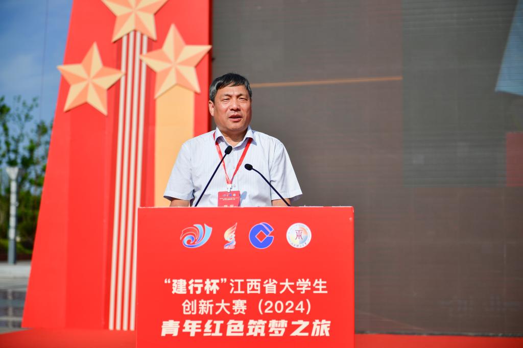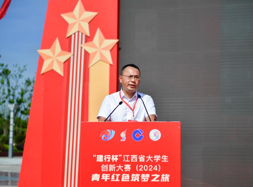 本网讯 7月9日,“建行杯”江西省大学生创新大赛(2024)“青年红色筑梦之旅”活动在赣州市兴国县举行。省委教育工委委员、省教育厅副厅长刘小强出席活动出征仪式并讲话,同时为 “青年红色筑梦之旅”活动出征队伍授旗。我校党委副书记罗仙平,校党委常委、副校长龚姚腾一同出席活动,罗仙平代表学校致欢迎辞,兴国县委书记李贱贵出席活动并致欢迎辞。