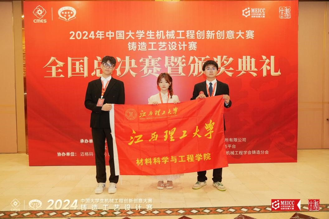 本网讯 近日,第十五届中国大学生铸造工艺设计大赛决赛在辽宁省大连市落下帷幕。由我校材料科学与工程学院学子吴若琛、刘子翔、何雯婕与化学化工学院学子陈心怡四位同学组成的参赛团队(指导老师叶洁云、张嘉艺)荣获本届全国大学生铸造工艺设计大赛国赛一等奖。我校也是此赛事近十届以来江西省唯一获得国赛一等奖的高校。