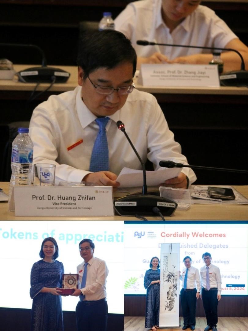 8月5日上午,宋卡王子大学举行欢迎见面会,宋卡王子大学校长助理Janya Chanchaichujit对我校师生来访表示欢迎,并简要介绍了宋卡王子大学的历史、现状及发展建设情况。随后,我校党委常委、副校长黄志繁致辞。他表示,30余年的友谊来之不易,希望通过此次交流,双方能在学生联合培养、学术文化交流方面进一步加强合作。最后双方互赠礼物并合影留念。
