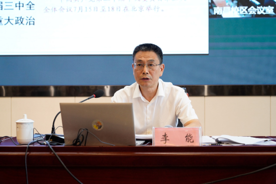 本网讯 8月21日下午,学习贯彻党的二十届三中全会精神省委宣讲团宣讲报告会在我校三江校区启航会议中心1号厅举行。省委宣讲团成员、省委党校(江西行政学院)常务副校长(副院长)李能作宣讲报告。校党委常委、副校长龚姚腾主持报告会。