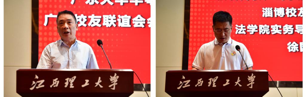 校友代表、广州灏天工程顾问有限公司、广东天华华粤会计师事务所有限公司董事长、广州校友联谊会会长、工业与民用建筑专业1986届温珍良校友,山东建仑律师事务所高级合伙人、淄博校友联谊会副秘书长、法学院实务导师、法学专业2004届徐国良校友发表讲话。他们深情地回顾了自己在母校的求学经历,赞美了母校如今取得的成就,分享了参观新校区的感受,讲述了母校的教育对自己人生发展的深远影响,并表示将进一步加强与母校之间的合作与交流,促进母校教育事业的高质量发展。