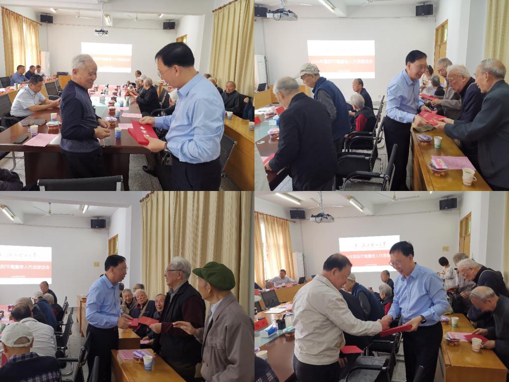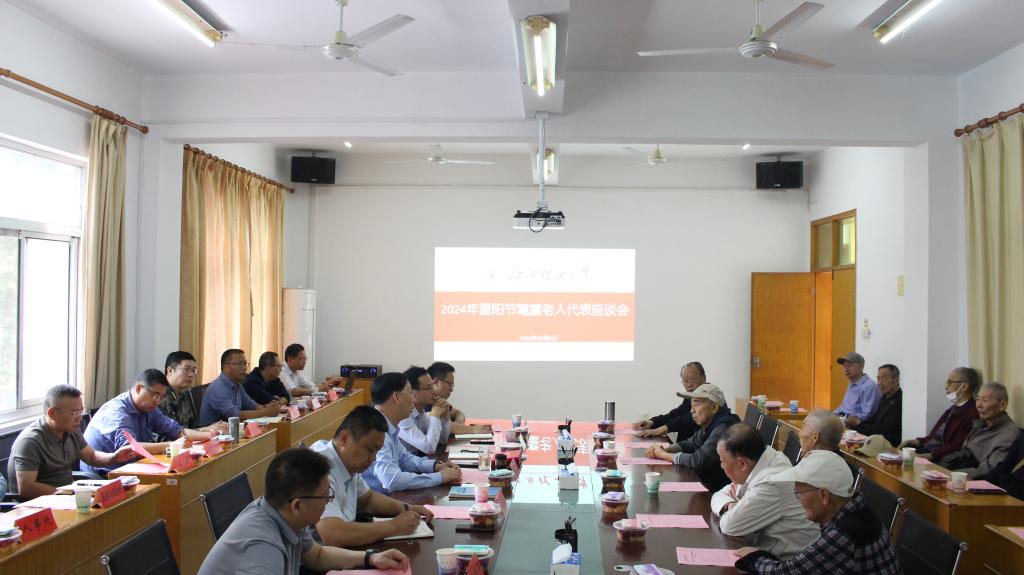 本网讯  10月9日上午,我校在红旗校区老年活动中心202会议室召开2024年重阳节耄耋老人代表座谈会。校党委书记杨斌,校党委常委盛晓明、汪锋锁出席座谈会,相关职能部门负责人及离退休教职工代表参加座谈会。会议由盛晓明主持。