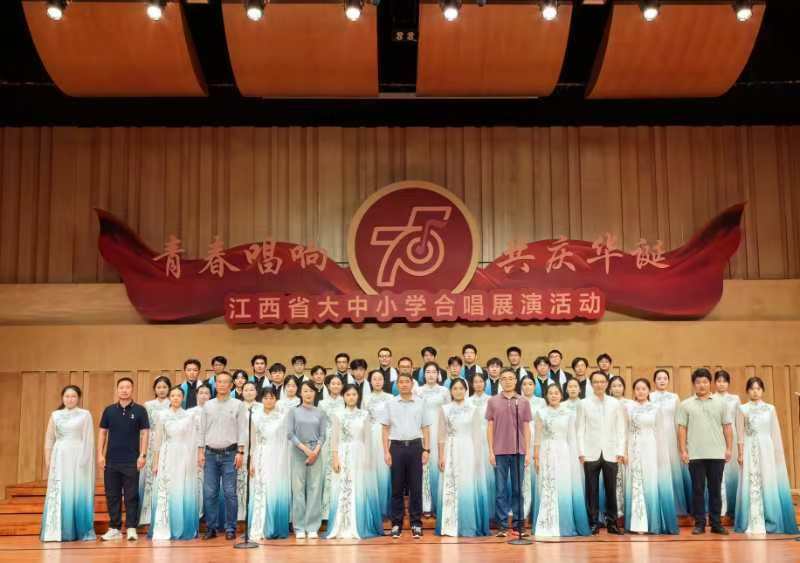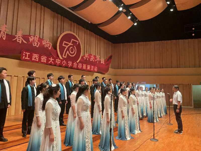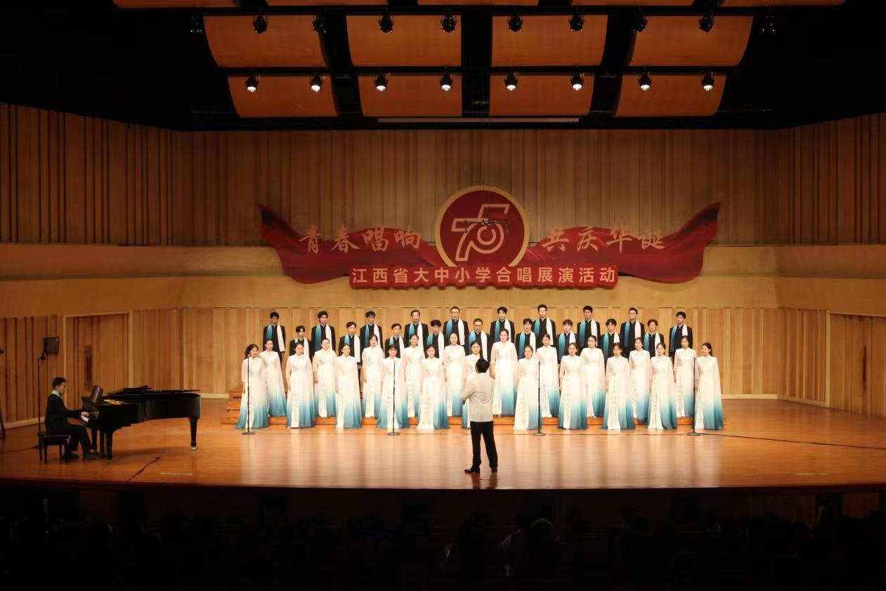 9月27日晚,以“青春唱响 共庆华诞”为主题的江西省大中小学合唱现场展演在南昌举行。受江西省教育厅邀请,我校八角之声合唱团代表学校参加此次展演。省委教育工作领导小组各成员单位领导,委厅领导和委厅机关各处室、直属各单位主要负责同志,各设区市、省直管县(市)教育局负责同志和相关业务科室主要负责同志,赣江新区社会发展局负责同志,相关高校、中小学校负责同志等观看了本次合唱现场展演。