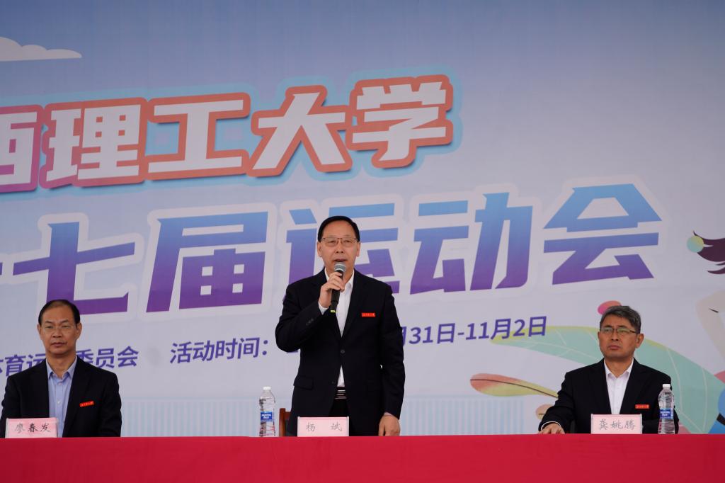 本网讯 秋风送爽,阳光正好。10月31日至11月2日,我校第五十七届运动会在三江校区田径场举行。校党委书记杨斌,校党委常委、副校长龚姚腾、廖春发、唐云志,校党委常委、纪委书记、监察专员刘飞出席开幕式,第五十七届运动会组织委员会成员以及运动员代表参加开幕式。开幕式由校党委(校长)办公室主任、校体育运动委员会秘书长熊淑华主持。