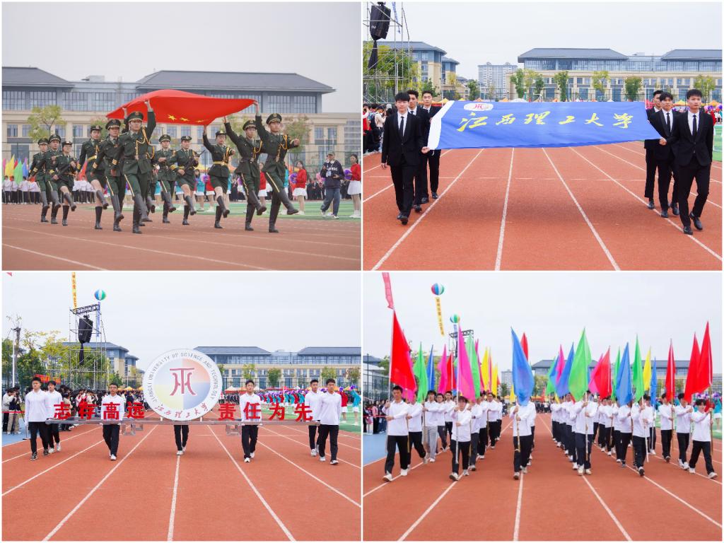 伴随着激昂的音乐,国旗队、校徽队、校旗队、彩旗队以沉稳的步伐和整齐的队形引领入场,各学院、部门代表队依次出场,他们步伐整齐,身姿矫健;场上彩旗飘飘,方队井然。