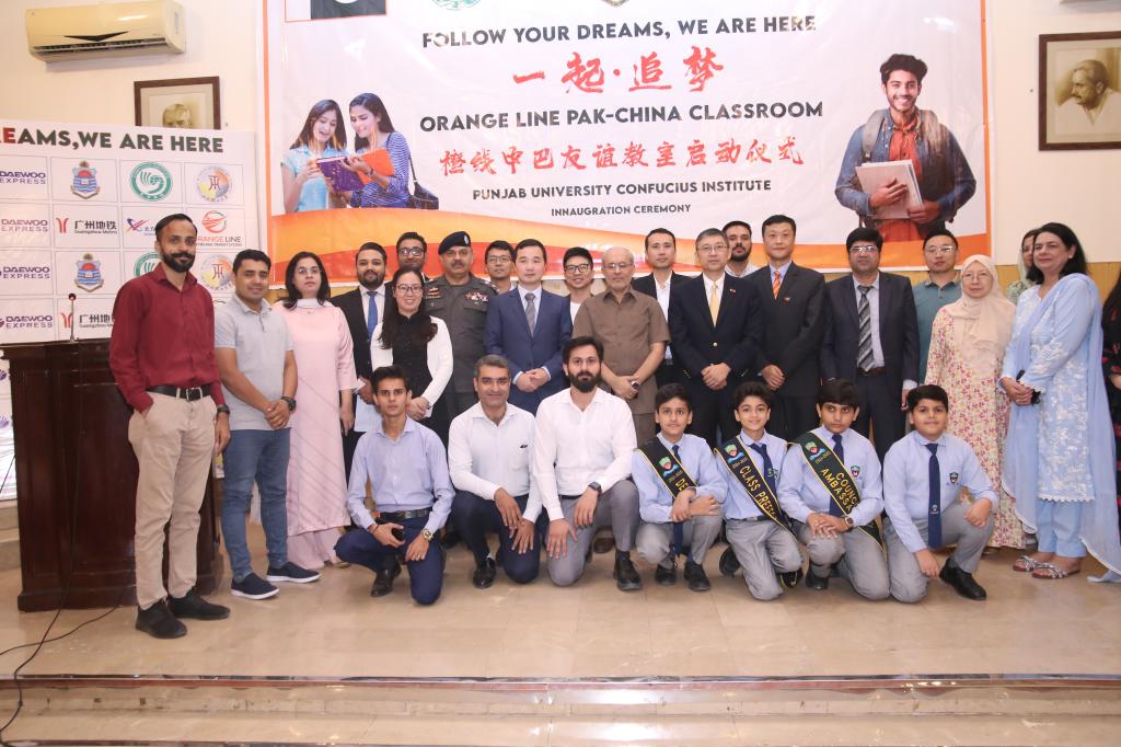 本网讯 11月4日下午,由拉合尔橙线项目向我校巴基斯坦旁遮普大学孔子学院捐赠的中巴友谊教室的揭牌仪式在旁遮普大学中心会议厅举行。中国驻拉合尔领事馆曹珂代总领事、拉合尔橙线项目首席执行官谭子东,旁遮普大学副校长哈利德、孔子学院巴方院长沙菲克及本土中文教师等近百人参加。我校孔子学院中方院长蔡进宝通过视频致辞。