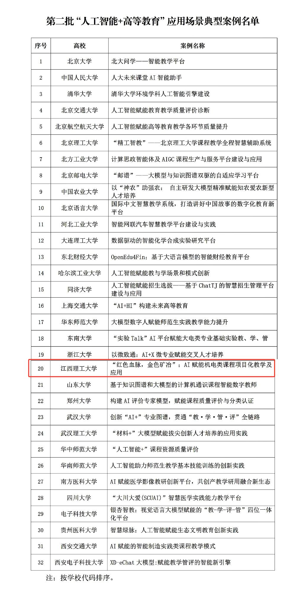 本网讯 近日,教育部高教司公布了全国第二批32个“人工智能+高等教育”应用场景典型案例,我校“‘红色血脉,金色矿冶’:AI赋能机电类课程项目化教学及应用”为江西省唯一成功入选的案例。
