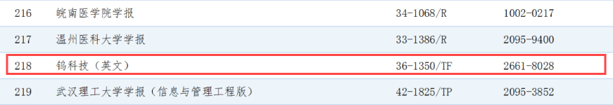 本网讯  近日,2024年度中国高校科技期刊建设库•杰出/百佳/优秀科技期刊拟入库案例正式发布,我校主办的《钨科技(英文)》《有色金属科学与工程》在经过征集、推荐、审核和公示等程序后,双双入选2024年度中国高校科技期刊建设示范案例库•优秀科技期刊。此次获奖表明我校主办的中英文科技期刊影响力正稳步提升,在行业内已获得较高的认可度。