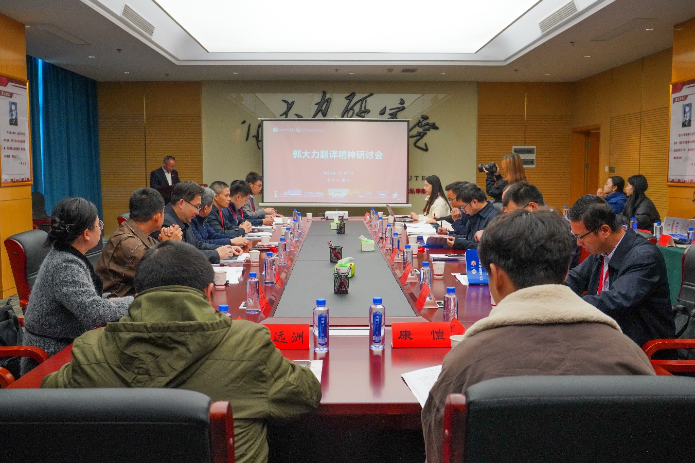 本网讯 12月7日,郭大力翻译精神研讨会在我校三江校区求是楼郭大力研究院会议室举行。首都师范大学原党委副书记、中国人民大学教授、博士生导师徐志宏,校党委常委、副校长、郭大力研究院院长黄志繁,赣州市社会科学界联合会主席郑成功,中共赣州市委党校二级调研员阳振乐出席开幕式。开幕式由校社会科学处处长王小元主持。
