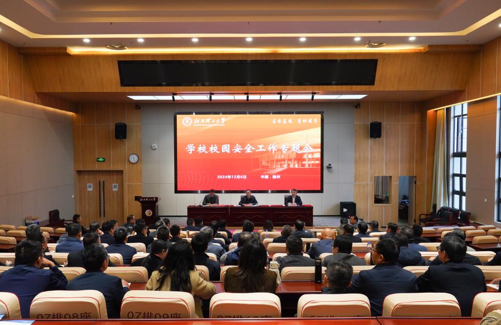 本网讯  12月6日上午,我校在三江校区启航会议中心1号会议厅召开校园安全工作专题会议。校党委书记杨斌,校党委常委、副校长董冰岩、熊志华,各学院党委书记、副书记,各职能部门主要负责人参加会议。会议由董冰岩主持。