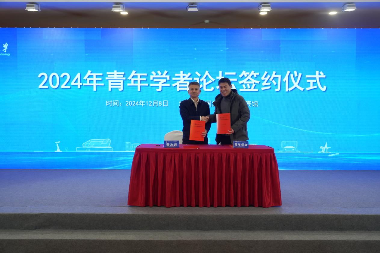 以此为契机,论坛还举行了隆重的人才签约仪式。5位青年学者与董冰岩共同上台,签署了人才合作协议,为学校的未来发展注入了新的活力。