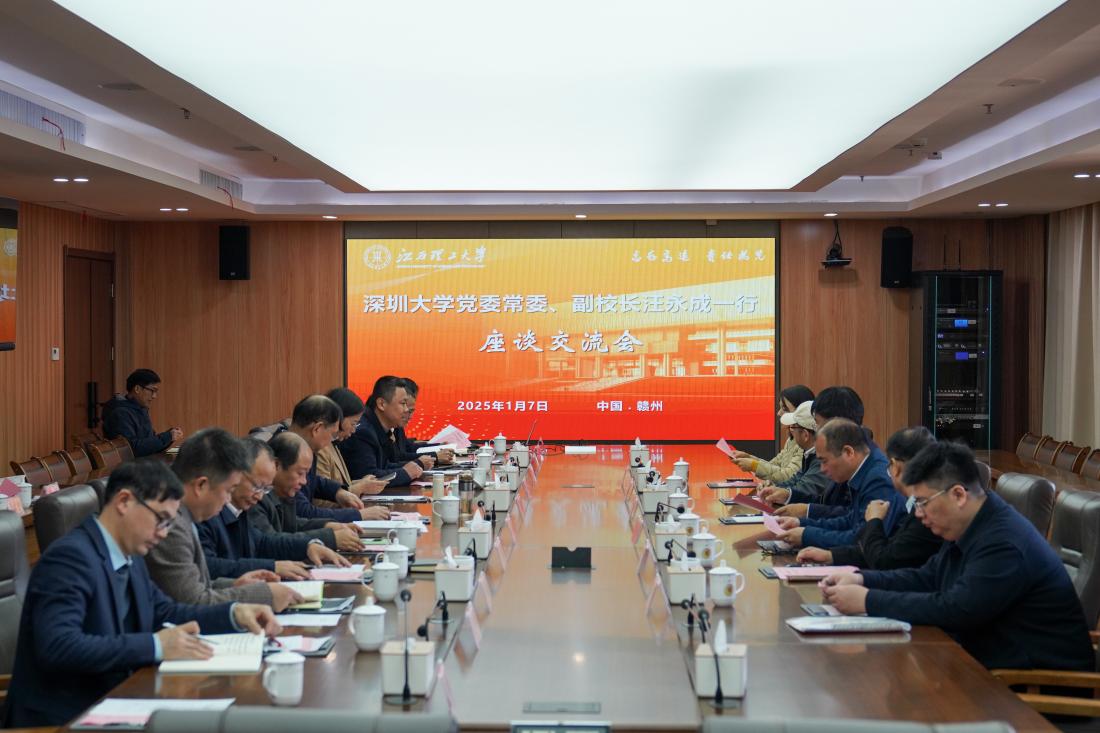 廖春发对汪永成一行的到来表示欢迎,对深圳大学长期以来对我校发展的关心与支持表示感谢,并围绕办学地位、平台建设、学科建设、成果转化等方面介绍了学校近几年取得的成就。他表示,我校在社会影响力和综合实力方面取得了显著进展,依托国家稀土和有色金属战略资源及独特的区域优势,在钨、铜、锂等多个领域展现出了蓬勃的态势,推动了学科建设与技术创新的持续突破。学校将充分发挥自身优势,发挥好资源集中效应,推动双方在人才培养、学科发展、平台建设等方面携手共进。