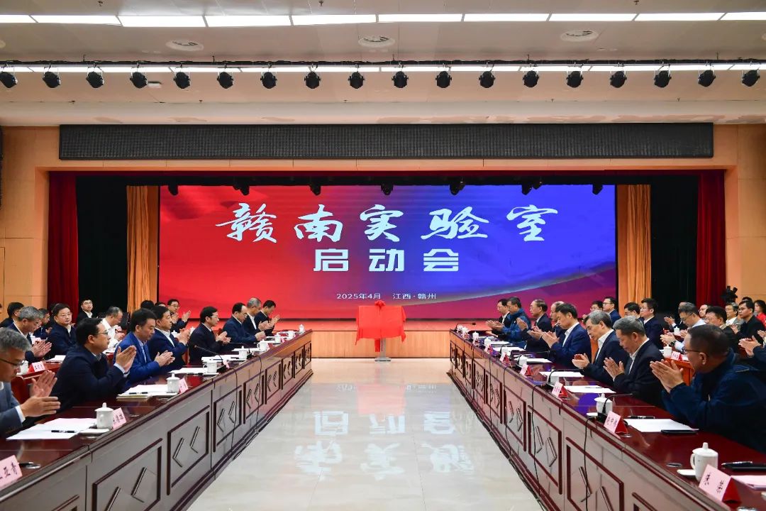 省长叶建春和中国工程院院士毛新平共同为赣南实验室揭牌。省领导黄喜忠、夏文勇出席。中国工程院院士、北京科技大学教授谢建新,中国工程院院士、北京工业大学教授聂祚仁,中国工程院院士、中科院武汉岩土力学研究所研究员杨春和,中国工程院院士、中国矿业大学(北京)教授葛世荣,中国工程院院士、中南大学教授赵中伟参加会议。参加会议的还有省政府、省直有关部门、实验室依托单位、共建单位和相关企业的代表。