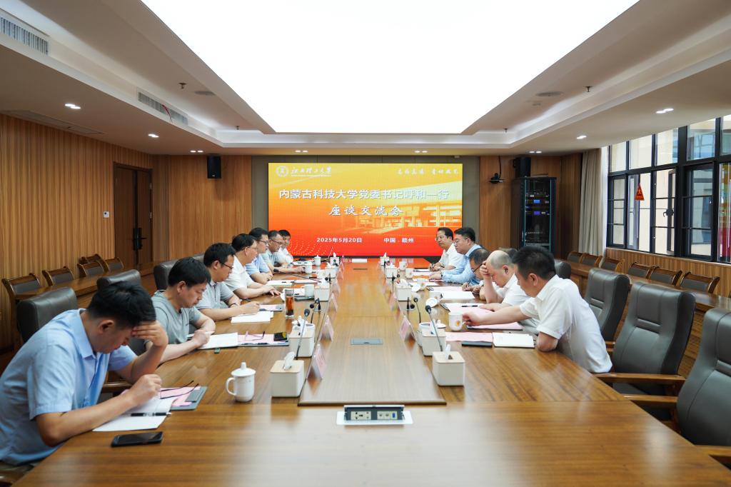 本网讯 5月20日上午,内蒙古科技大学党委书记呼和一行来访我校,并在三江校区濂溪楼1号会议室召开座谈交流会。校党委书记杨斌,党委常委、副校长熊志华出席会议,各相关部门负责人参加会议。