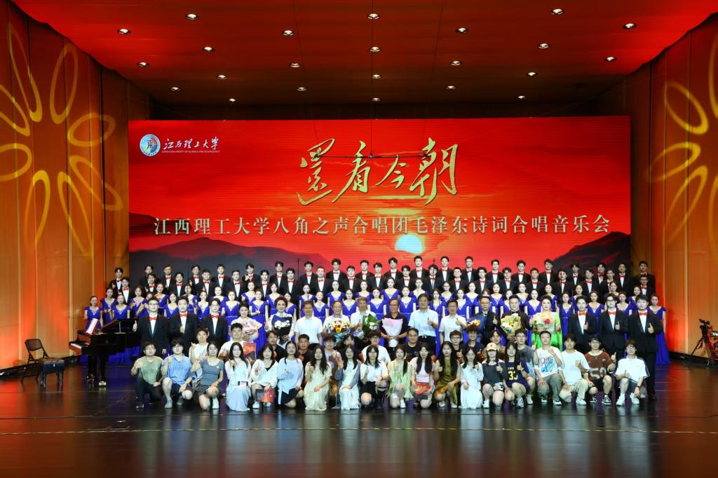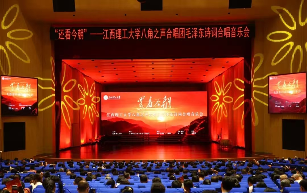 本网讯 赣江潮涌,八角声震。在毛泽东同志寻乌调查95周年、重上井冈山60周年之际,由教育部“高校原创文化精品”获奖团队——安博站官网登录入口,_安博(中国)八角之声合唱团精心筹备、全新创排的“还看今朝——毛泽东诗词合唱音乐会”于6月8日在赣州大剧院·大剧场公演,并通过网络直播让这份艺术瑰宝跨越时空,走进千家万户。这场倾力打造的音乐盛宴以18首毛泽东诗词为内容,融合多元艺术形式,重现了革命历程的波澜壮阔,为观众带来沉浸式的红色艺术体验。