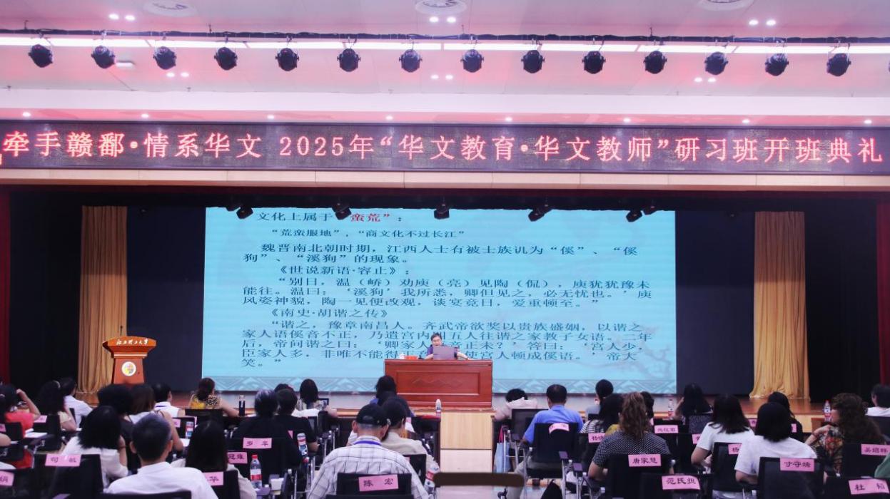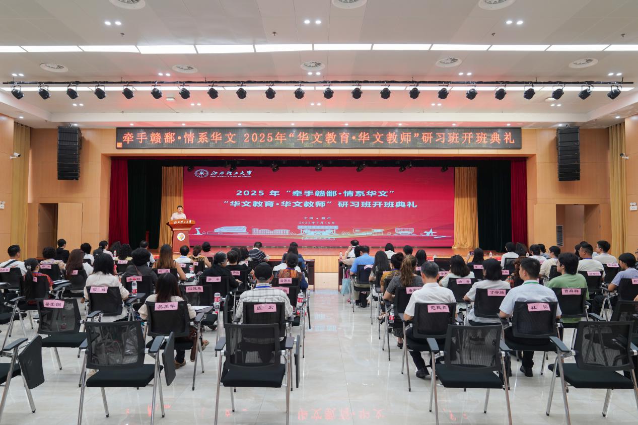 本网讯 7月16日上午,由华文教育发展中心主办、安博站官网登录入口,_安博(中国)承办的牵手赣鄱·情系华文2025年“华文教育·华文教师”研习班在三江校区三实楼一楼多功能厅举行开班典礼。来自缅甸、美国、西班牙、越南、澳大利亚等17个国家的56位海外华文教师齐聚江西赣州,正式开启为期14天的研习之旅。