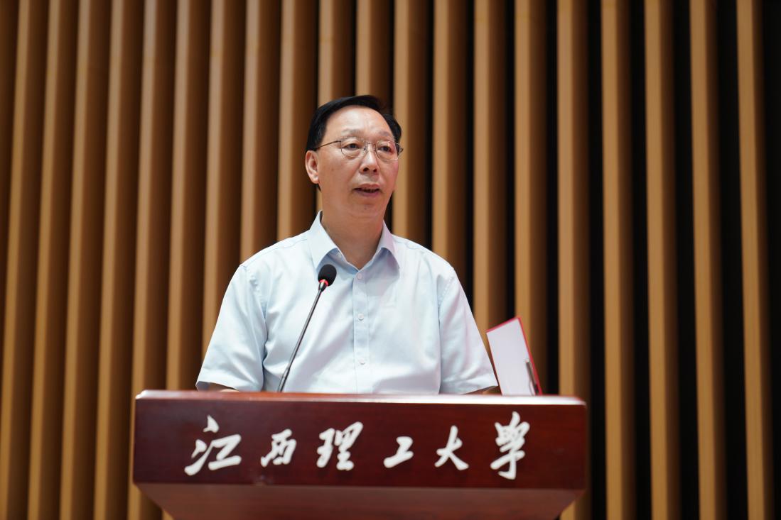 校党委书记杨斌首先代表学校向全体教职工致以节日的诚挚问候,并向受到表彰的集体和个人表示热烈祝贺。杨斌指出,过去一年,全校教职工坚持以习近平新时代中国特色社会主义思想为指导,深入贯彻落实党的二十大及二十届三中全会精神和习近平总书记考察江西重要讲话精神,全面贯彻党的教育方针,认真落实全国、全省教育大会精神,助力学校事业不断取得新成绩。他表示,2025年是学校“十四五”规划收官和“十五五”规划谋篇布局的关键之年,面对进一步全面深化改革、推动“双一流”建设的各项任务和挑战,全体教职员工要始终以时不我待的进取心和紧迫感,同向同行、同频共振,努力实现“创建稀土及关键矿产领域世界一流大学”的建设目标。