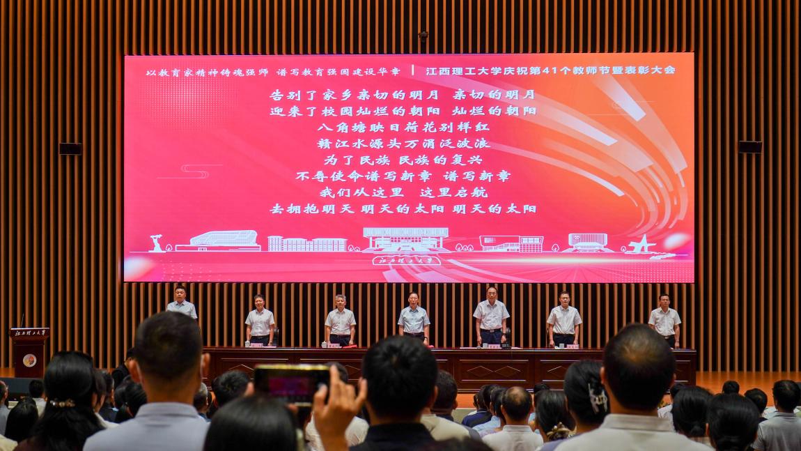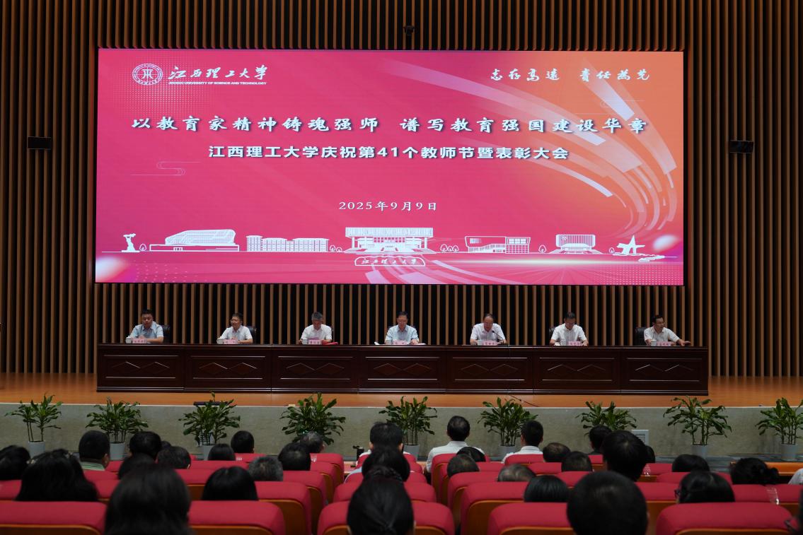 本网讯 9月9日下午,我校庆祝第41个教师节暨表彰大会在三江校区东园志远会议1号厅召开,南昌校区、先进铜产业学院(鹰潭)分会场同步视频参加。全体在家校领导、党委常委、赣州校区各学院党政主要负责同志、南昌校区管委会全体班子成员、先进铜产业学院(鹰潭)全体班子成员以及各校区教师代表参加会议。大会由中国工程院院士、校长葛世荣主持。