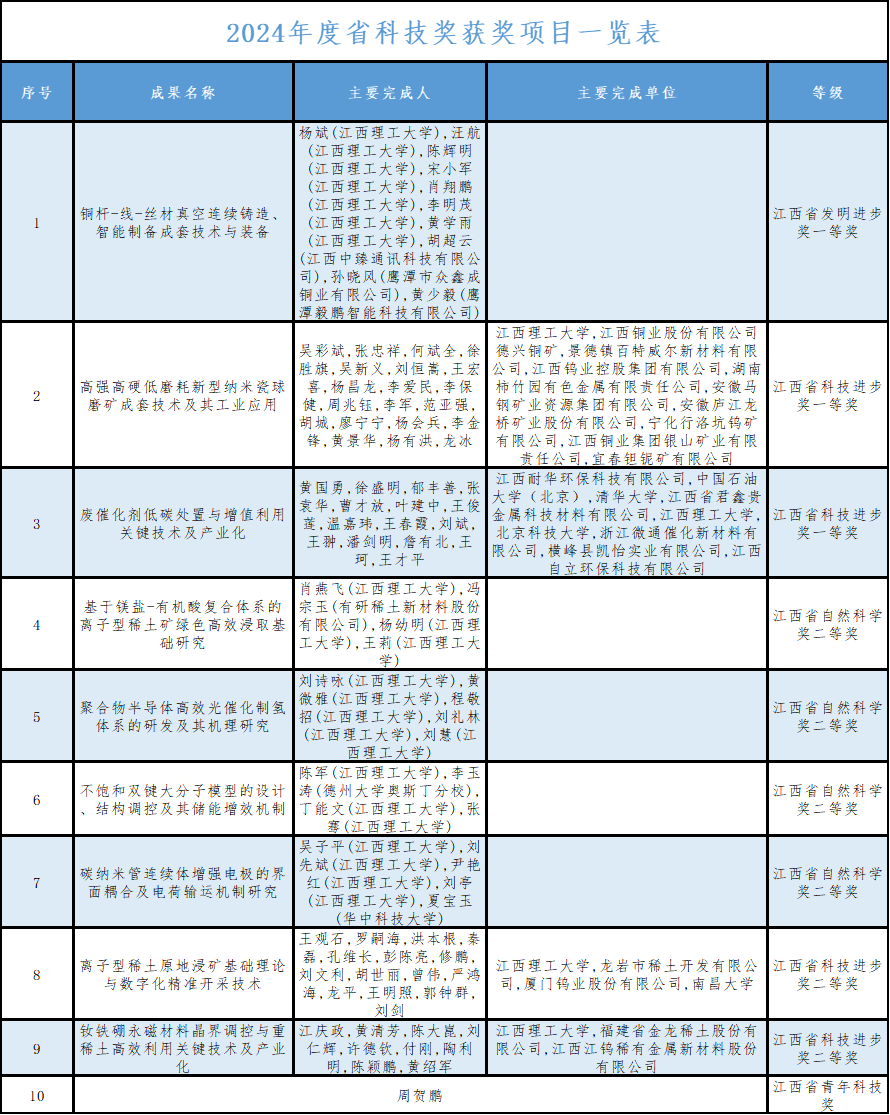 本网讯  近日,全省科学技术奖励大会在南昌召开。省委书记尹弘出席并讲话,省长叶建春主持会议。省领导李红军、任珠峰、陈敏、罗小云、卢天锡和在赣两院院士陈晔光、葛世荣、谢明勇出席会议,夏文勇宣读了《江西省人民政府关于2024年度江西省科学技术奖励的决定》。省领导为2024年度省科学技术奖获奖代表颁奖,并在会前与获奖代表合影。校党委书记杨斌作为发明奖一等奖获奖代表与葛世荣一同参加会议。我校参与的10项科技成果在全省科技奖励大会上获表彰,其中一等奖3项、二等奖6项、青年奖1项,获奖总数和一等奖及以上数连续多年位居省内高校前列。