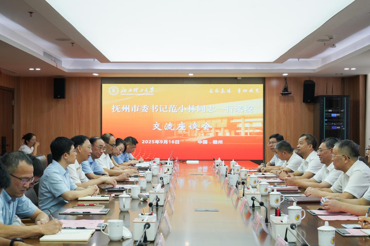 本网讯 9月16日上午,抚州市委书记范小林一行来访。校党委书记杨斌,中国工程院院士、校长葛世荣在三江校区濂溪楼2号会议室会见来宾并召开座谈交流会。双方就深入贯彻习近平总书记关于教育科技人才工作重要论述和考察江西重要讲话精神,进一步深化务实合作,共同推动高质量发展进行了深入交流。会议由葛世荣主持。抚州市政府党组成员、副市长,抚州高新区党工委书记汪华辉,赣东学院副院长李勋,抚州市委组织部常务副部长罗海清,抚州市科技局党组书记、局长艾恒知,抚州市科技局党组成员、副局长杨斯丹等陪同来访。