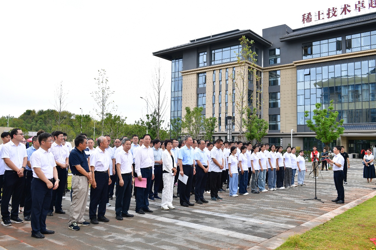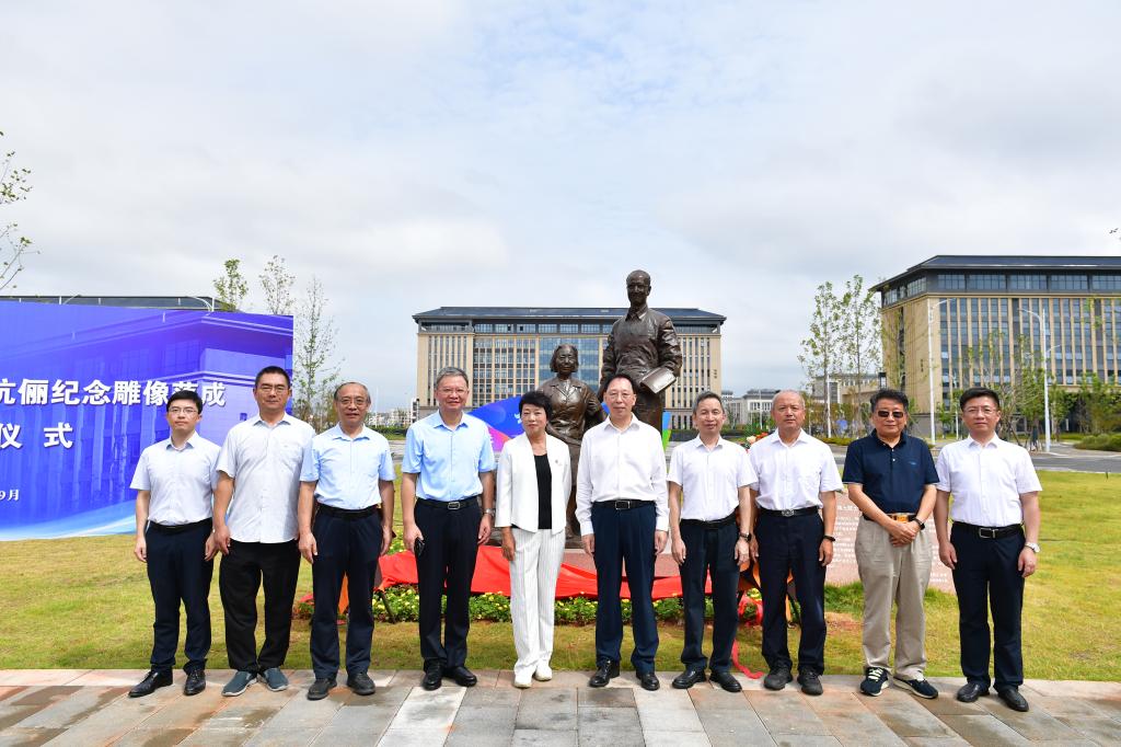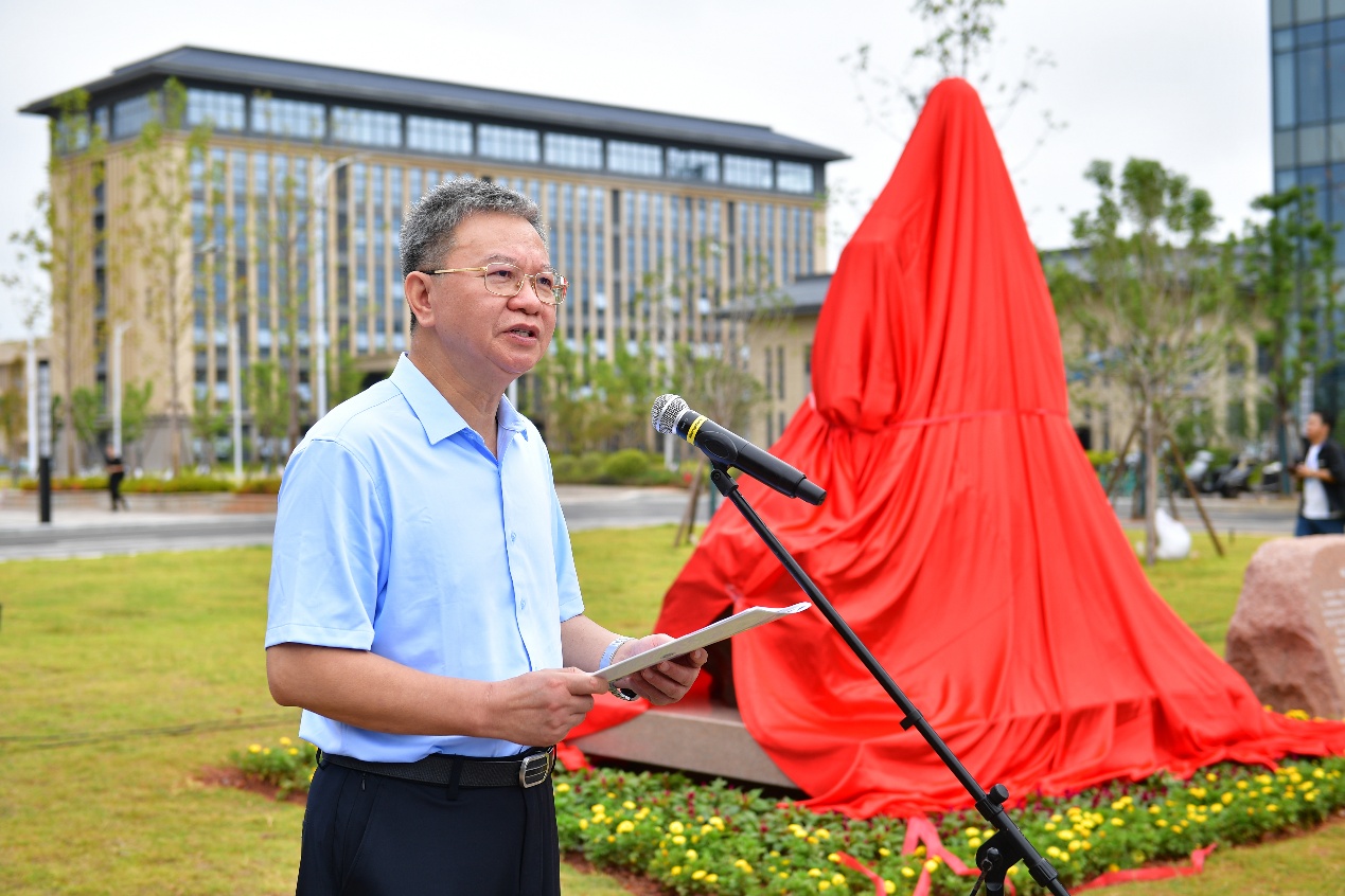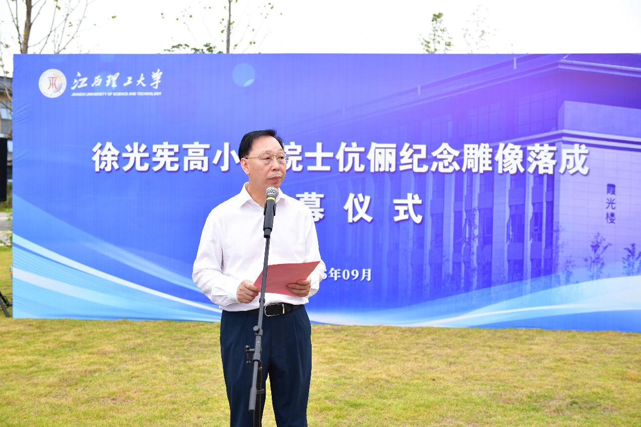 本网讯 9月21日,徐光宪、高小霞院士伉俪纪念雕像落成揭幕仪式在我校三江校区西园举行。徐光宪和高小霞院士之女徐放女士,徐光宪和高小霞院士学生代表、中国科学院院士严纯华、中国稀土集团研究院首席专家廖春生,中国科学院赣江创新研究院党委书记齐涛,江西省工商联兼职副主席、虔东稀土集团董事长、总经理龚斌,校党委书记杨斌、党委副书记徐志峰、副校长汪航等出席仪式。学校相关部门负责人、稀土学院教师代表及首届“霞光班”全体103名学生共同参加。仪式由汪航主持。