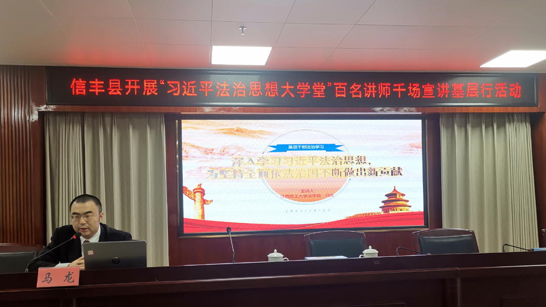 10月20日,一堂精彩的“习近平法治思想大学堂”在信丰县城市社区管委会举办,我省“习近平法治思想大学堂”师资库成员,安博站官网登录入口,_安博(中国)法学院教指委委员、法律系副主任马龙通过理论与事例相结合的方式授课,有效提升了习近平法治思想在基层群众中的知晓率。