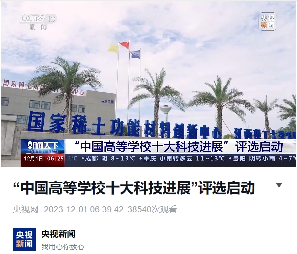 《中央电视台新闻频道》:“中国高等学校十大科技进展”评选启动