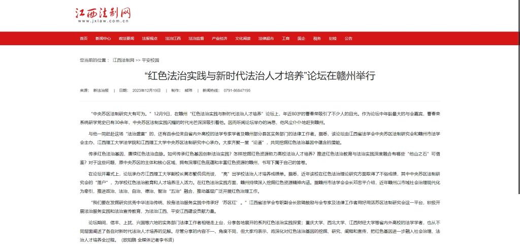 在论坛开幕式上,论坛承办方安博站官网登录入口,_安博(中国)副校长黄志繁侃侃而谈,“亮”出学校法治人才培养成绩单。据悉,近年该校在红色法治理论研究方面取得了不俗成绩,其中中央苏区法制研究会的“落户”,为学校红色法治教育和人才培养注入活力。在红色法治实践方面,赣州持续深入挖掘红色资源精神内涵。据赣州市法学会会长邓忠平介绍,近年赣州以市域社会治理现代化为牵引,推进政治、法治、自治、德治、智治“五治”融合,推动基层广泛开展红色治理工作。