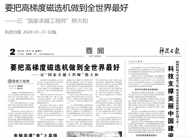 从勘破世界难题到装备落地开花,从开拓国际市场到带领企业飞速发展,今年72岁的熊大和潜心一生只为一件事:“要把高梯度磁选机做到全世界最好!”